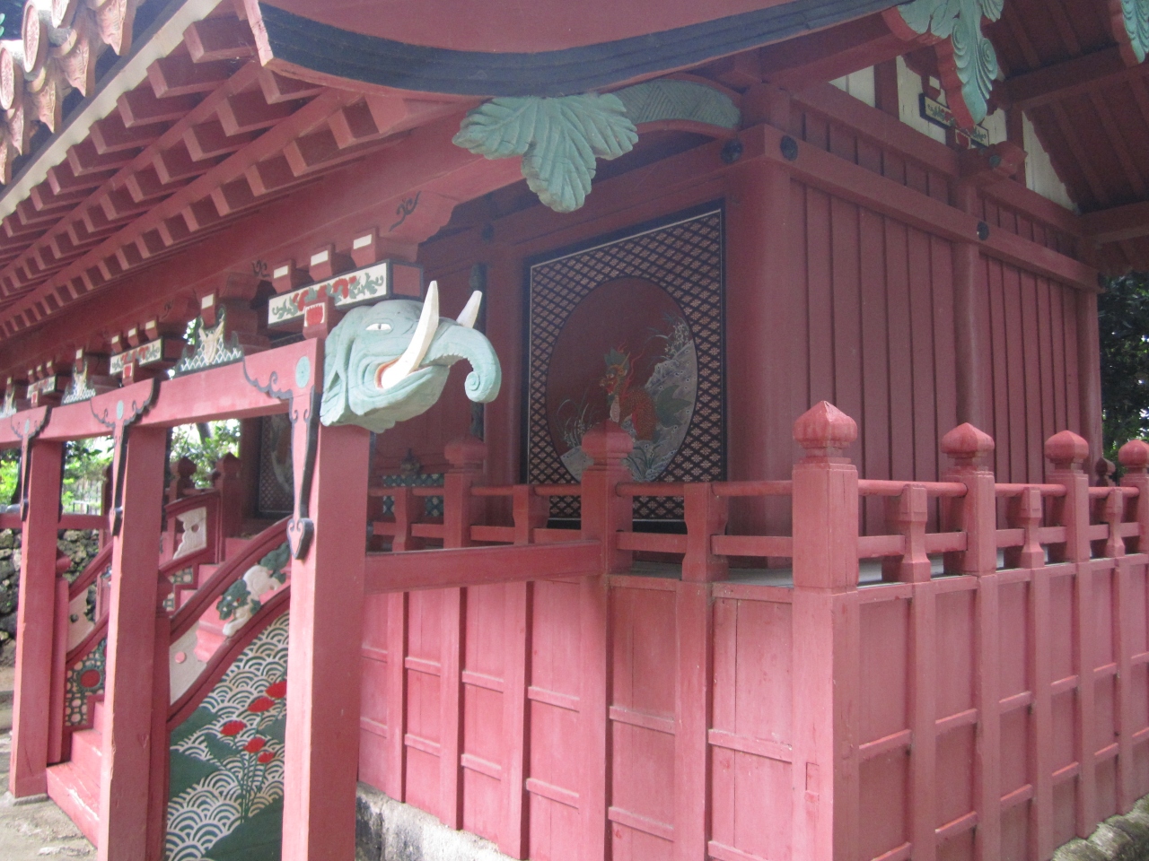 街の中心から近く、国指定の重要文化財ということで、おみやげなど買いに行くついでに見学しました。入口の門は桃林寺というお寺の隣の小さな赤い門の方が権現堂の入り口です。分からずに桃林寺に入ってしまいました。詳しくはないのですが、木彫りのところや、屋根のあたりなど、沖縄っぽい造りで普段見慣れているお寺や神社の御堂などとは、やはり違いました。