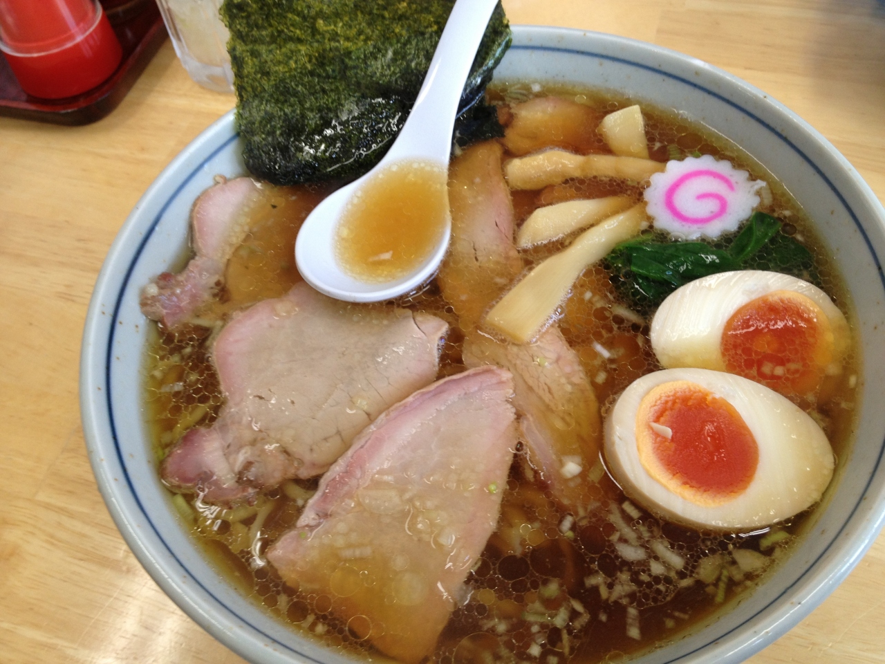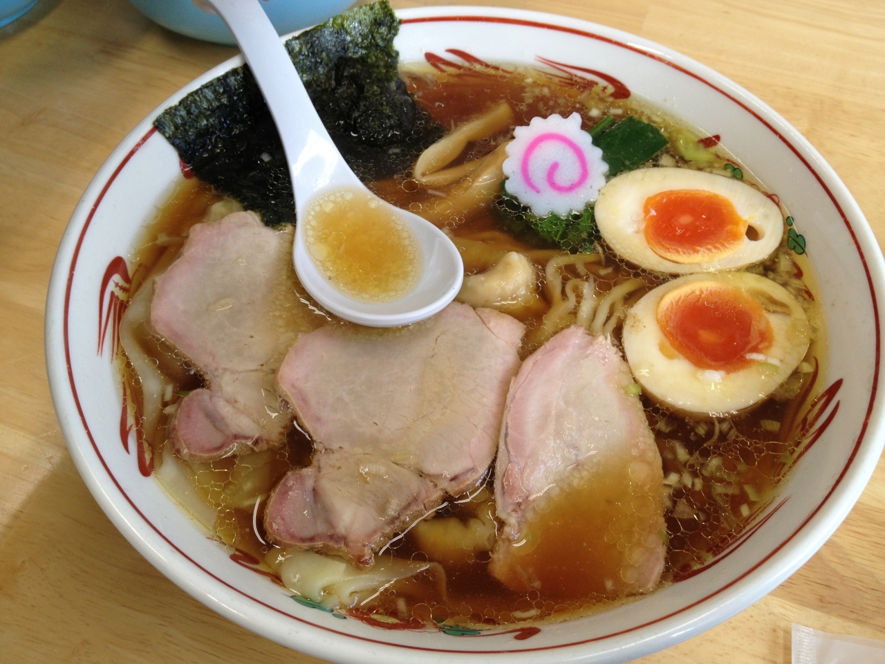 醤油味のワンタンメン味玉入り、チャーシューメン味玉入り(大盛)を注文。シンプルであっさりしている醤油スープに縮れの手打ち麺。程よい油加減で美味しいです。ワンタンはつるっとしたのど越し。チャーシューも食べ応えあり。全体のバランスも◎。
