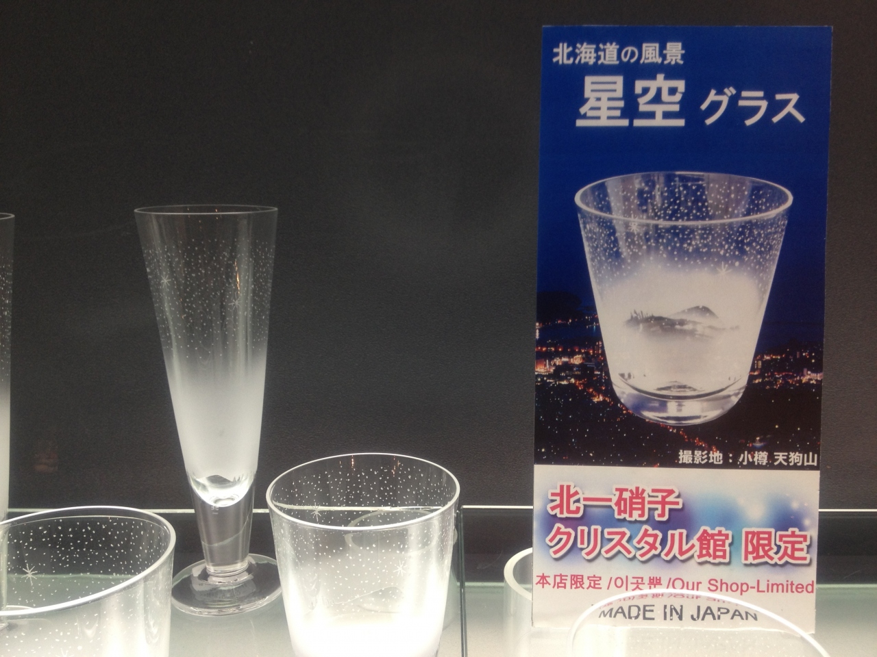 しかし、個人的におすすめはクリスタル館の限定商品です。北海道の星空や帆船を描いたグラスが販売されています。薄くて肌触りがいいです。