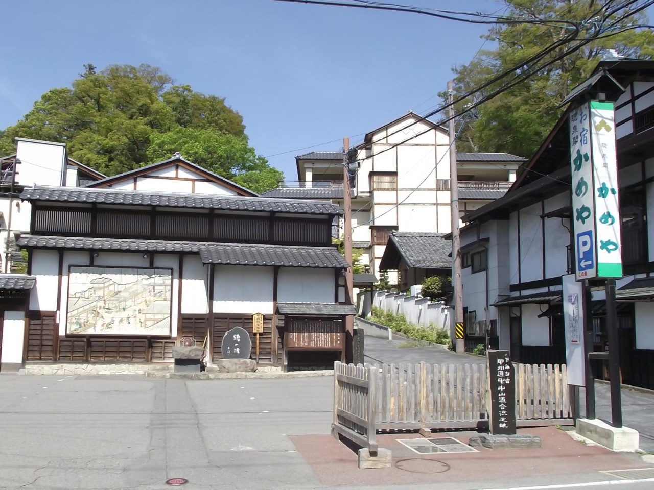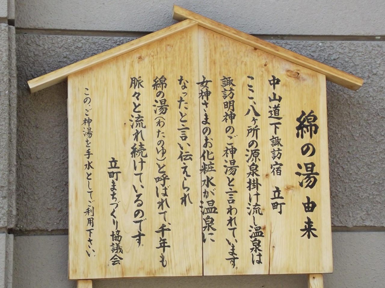 なお、綿の湯の由来は、この足湯のところにある立札より、近くの 甲州道中・中山道合流之地 のところにある 神話と伝説 の説明板を見ることをお勧めします。