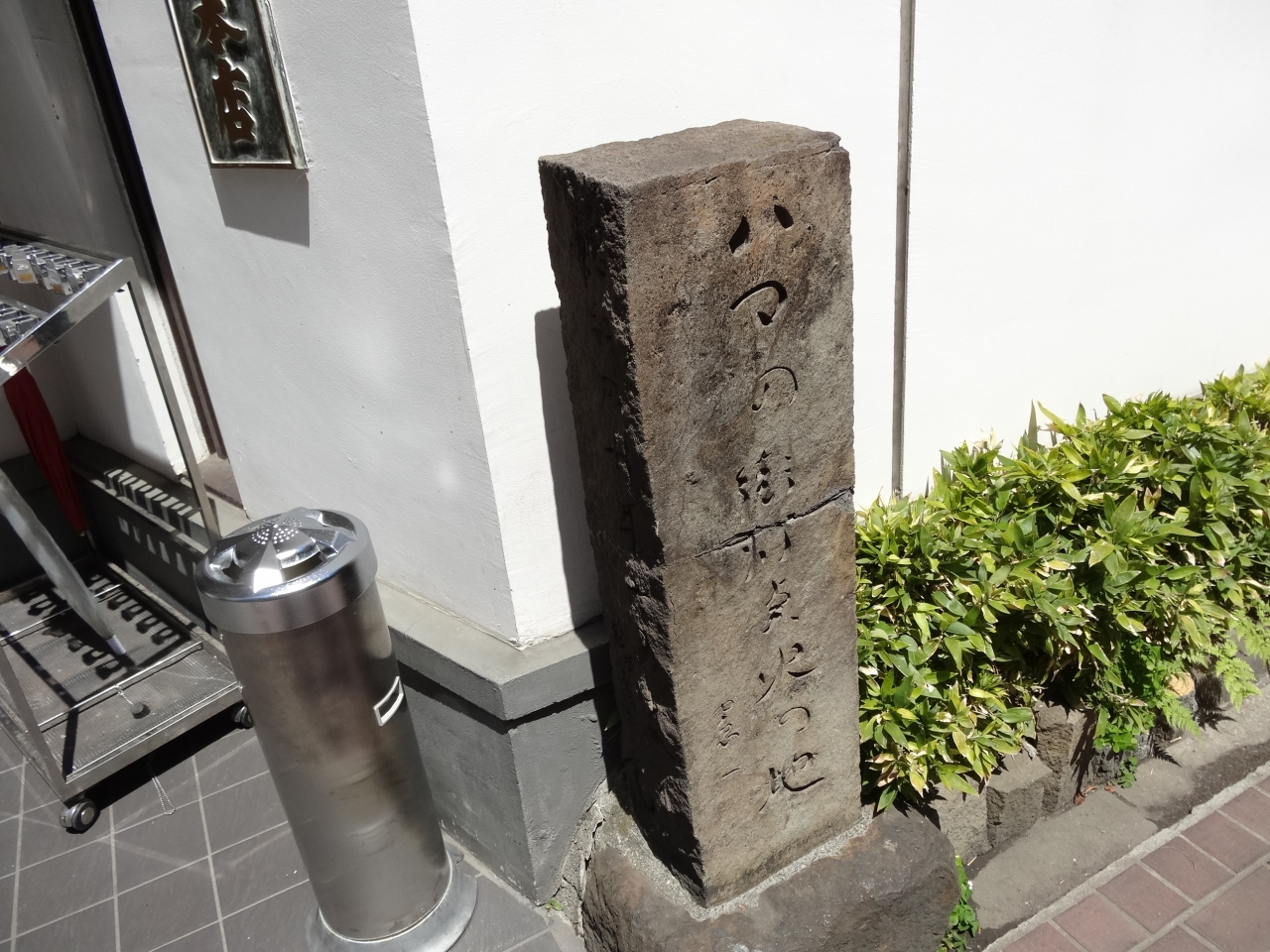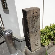 馬車道の勝烈庵のお店の前に、石作りの碑が立っています。