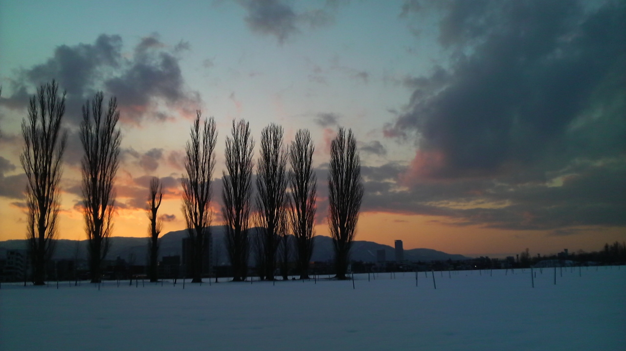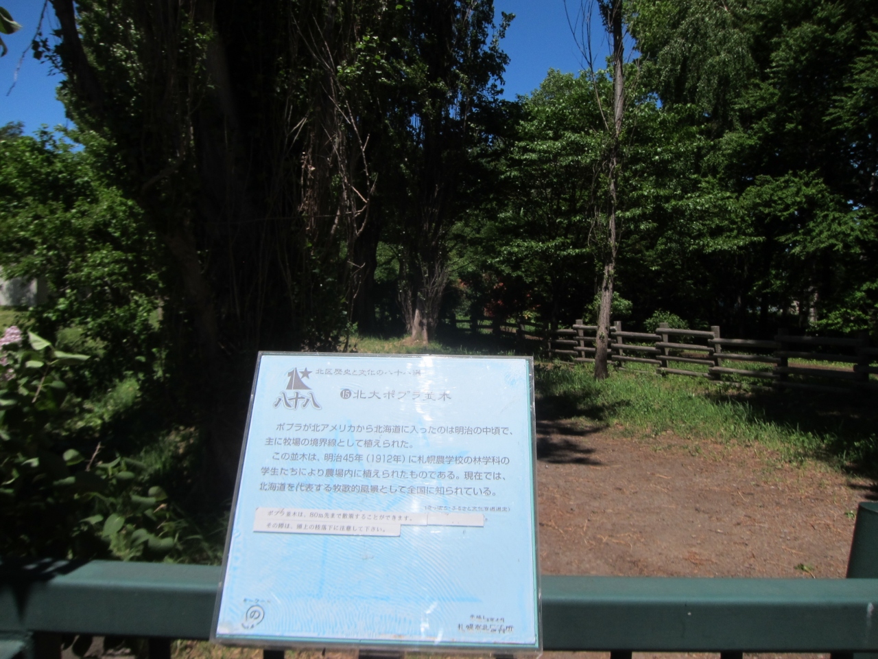 北海道大学の構内の北11条、西5丁目あたりにあります。大学を南北に通りぬける中央道路に沿っていくと、総合博物館と大学生協の建物の間に道路があり、それを奥まで進むとポプラ並木にたどりつきます。ちょっと分かりにくいので、札幌駅からだと、北大正門の案内板でよく場所を確かめていくとよいと思います。正門から結構距離があります(7~800mくらい)。大学の西側にあり、付近は農場になっています。そのため夕陽の頃など良いと思います。春夏秋冬楽しめますが、途中に牧柵があり、端から端までの通り抜けはできないようです。途中の大学生協やその横の大学内のレストランで食事ができます。また、大学内には他にも散策ポイントがあるので、時間に余裕を持っていろいろ回ってみるのも良いと思います。