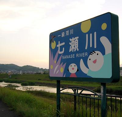 川の名前を記した看板には、ゲンジボタルが乱舞する様子が描かれていました。