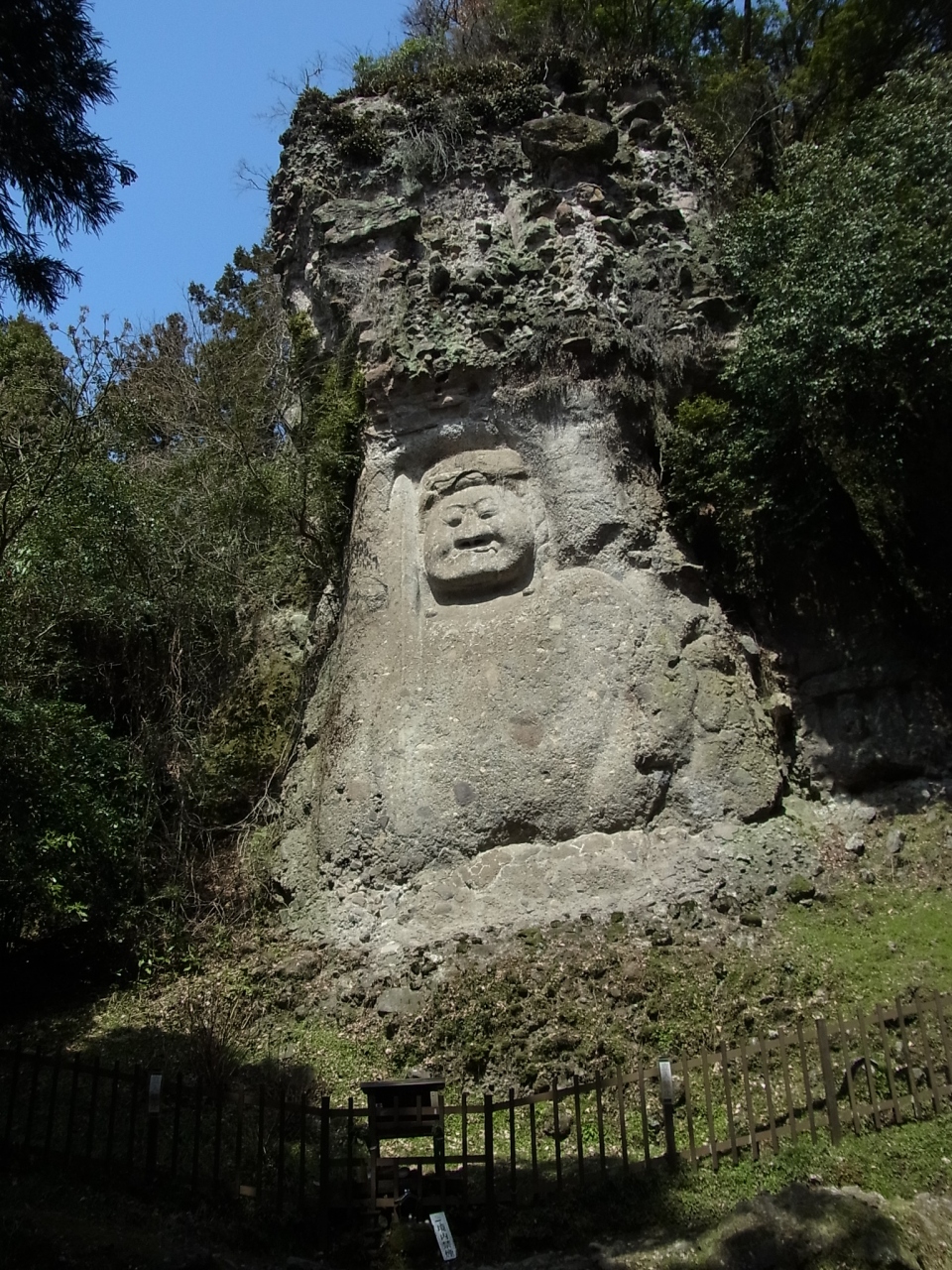 石段をけっこう昇っていかないと拝めません。鬼が積んだという言い伝えがあるものだけあって、石段は乱積みで手ごわいです。でもがんばって昇ると二体の仏様が迎えてくれます。左に不動明王様、右に大日如来様。長年の風雨にさらされてきたためだと思いますが、どちらも角がとれてふくよかな親しみやすいお顔になっています。