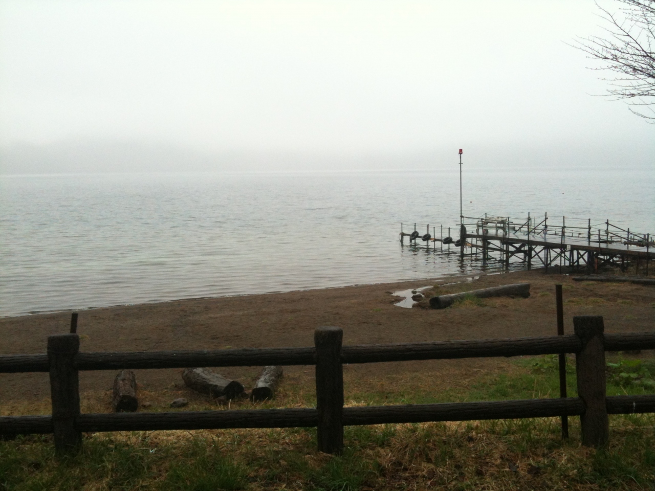 そして、やっと倶多楽湖に。大体何時見ても神秘的です。ガスっていて。非情なまでの透明な水面。そして、訪れる人も何となく少ない、たぶんこの湖を知らないのでしょうね。