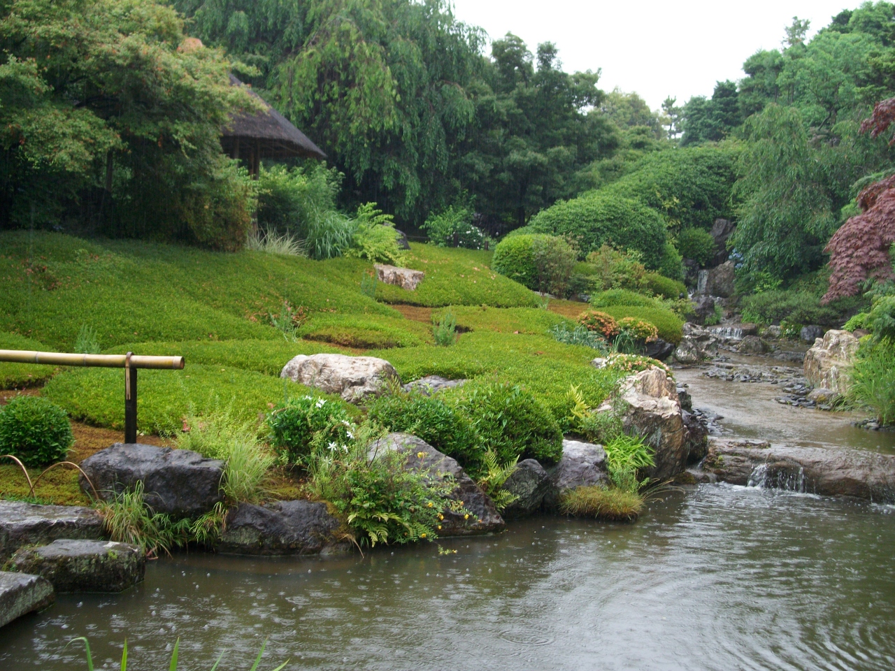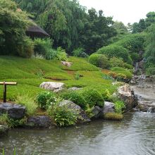なかでも、小さな滝から落ちた水が流れて大きな池に水をたたえる