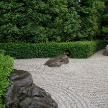 方丈(本堂)横にある枯山水の庭園の元信の庭、陽の庭、陰の