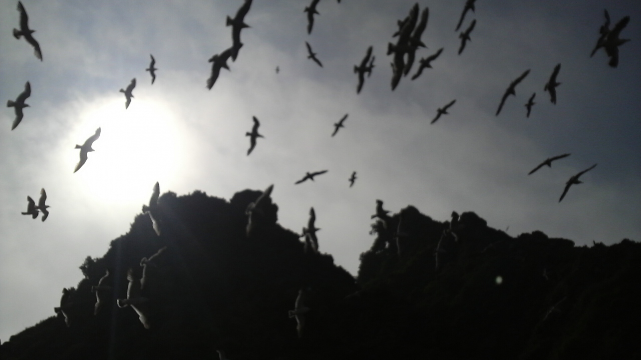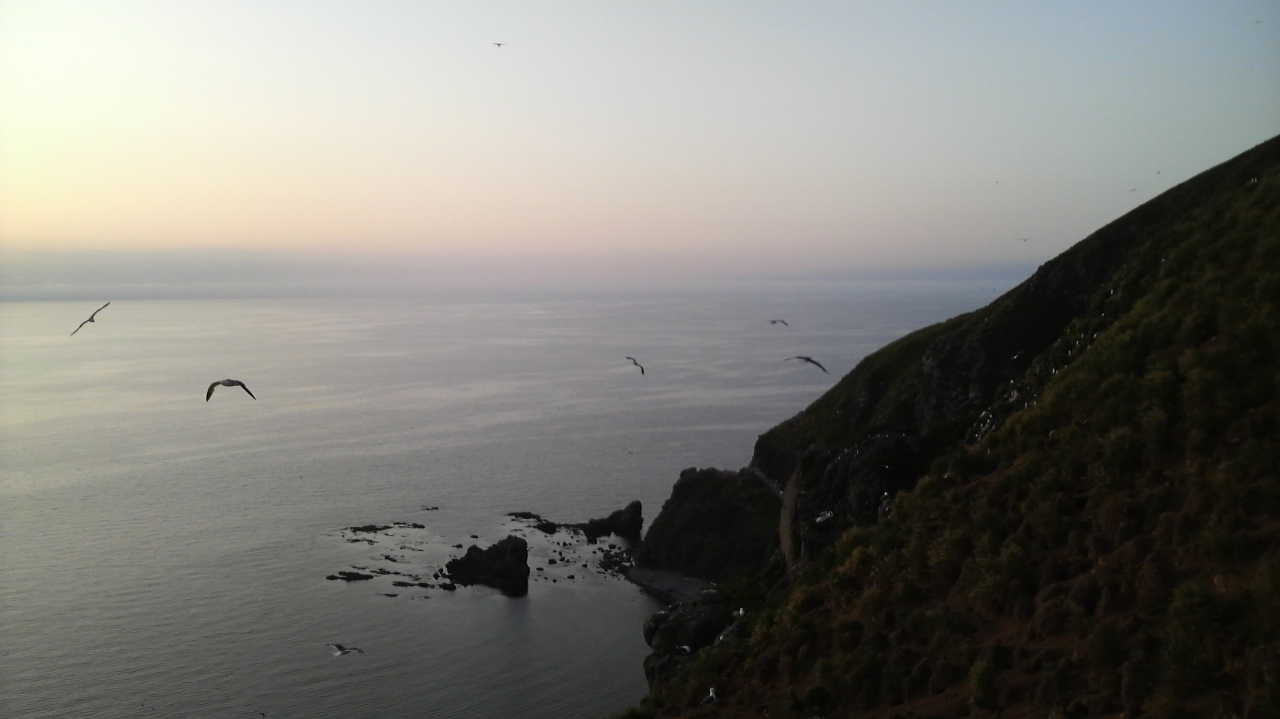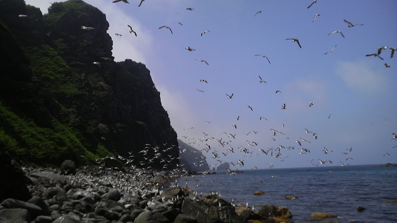天売島の西側に広がる断崖絶壁の海岸で、その地形から海鳥の楽園となっています。島の西端には赤岩展望台があり、ウトウの営巣地となっています。毎年6月末から8月の日没のころ、昼間、洋上で過ごしていたウトウが、まるで矢が飛んでくるように海から帰巣するのが見られます。海岸は、島の北側の道を進み、観音岬園地、海鳥観察舎などの観察ポイントにて断崖の上から眺めることができます。海岸沿いを進んだ場合、道なき道の波打ち際を進むことになります。