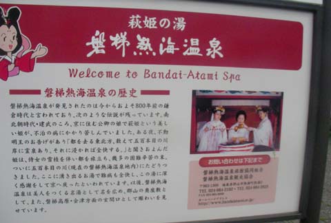 湯元元湯に入った後は磐梯熱海駅前に戻り、駅前の足湯の浸かっていきます。無色透明の熱めの湯が掛け流されて、無料で利用でき駅のすぐ前なので、列車の待ち時間に利用するのに便利です。看板によると鎌倉時代に発見された温泉とのことです。次の郡山駅行きの列車の時間に合わせて、改札に向かいました。