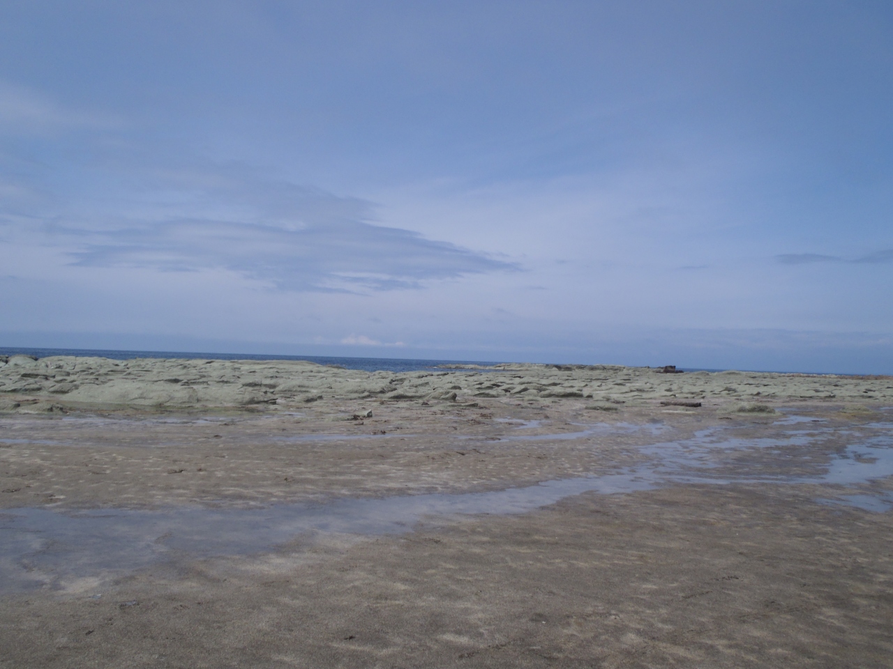 隆起した岩がかなりの面積で広がっていて、海まで歩いて行くことができます。