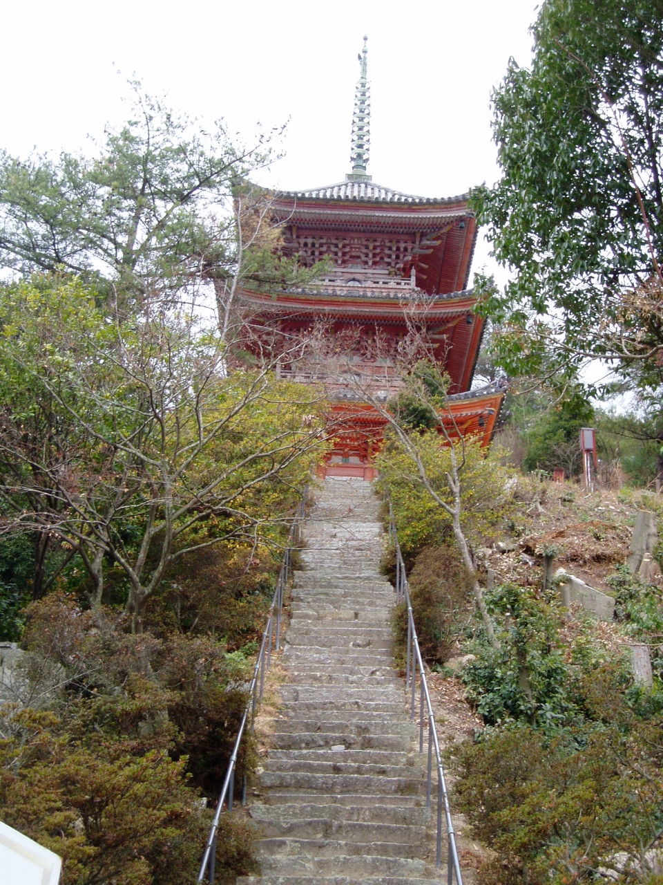 室町初期に建立されたお寺だそうです。まあ どこにでもある普通のお寺と思い立ち寄りましたが、なんと国宝の三重塔があるとのこと。でも 子供たちは興味がないと拝観を拒否したので、仕方なく階段の下から遠望するにとどめました。ちらっと見た限りでは、何とも言えませんが 周りの緑にマッチしていて厳かな雰囲気を醸し出していました。一人でも拝観してみるべきだったと後悔しています。