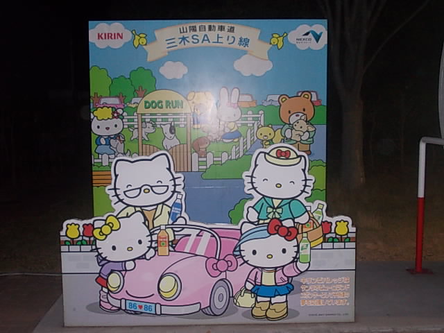 三木サービスエリアの上り線には、全国的にも珍しいキティちゃんデザインの自動販売機が設置されていて、特に家族連れに人気があります。特に夜間は、キティちゃんの耳の部分が電飾で光っている光景がインパクトありました。尚、すぐ隣には撮影スポットも用意されていますので、話の種に是非記念撮影していって下さい。