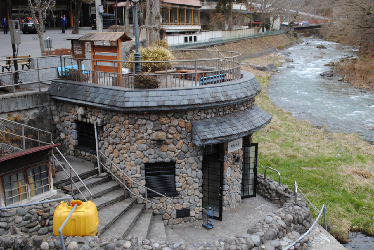 といっても1階部分は温泉ではなくベンチがおいてあり、ちょっとした散歩の休憩スポットになっていて、その下に男女別の石造りの共同湯が入っている形になります。