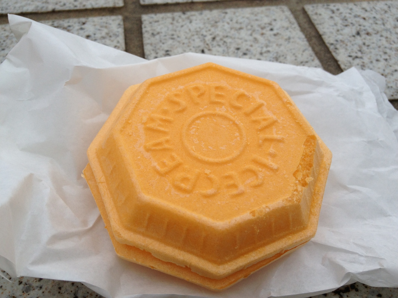 ワッフルコーン、たまごアイス、クリームぜんざい、ドリンクなどありますが、1番人気はアイスモナカです。モナカの皮がぱりっとしておいしいです!