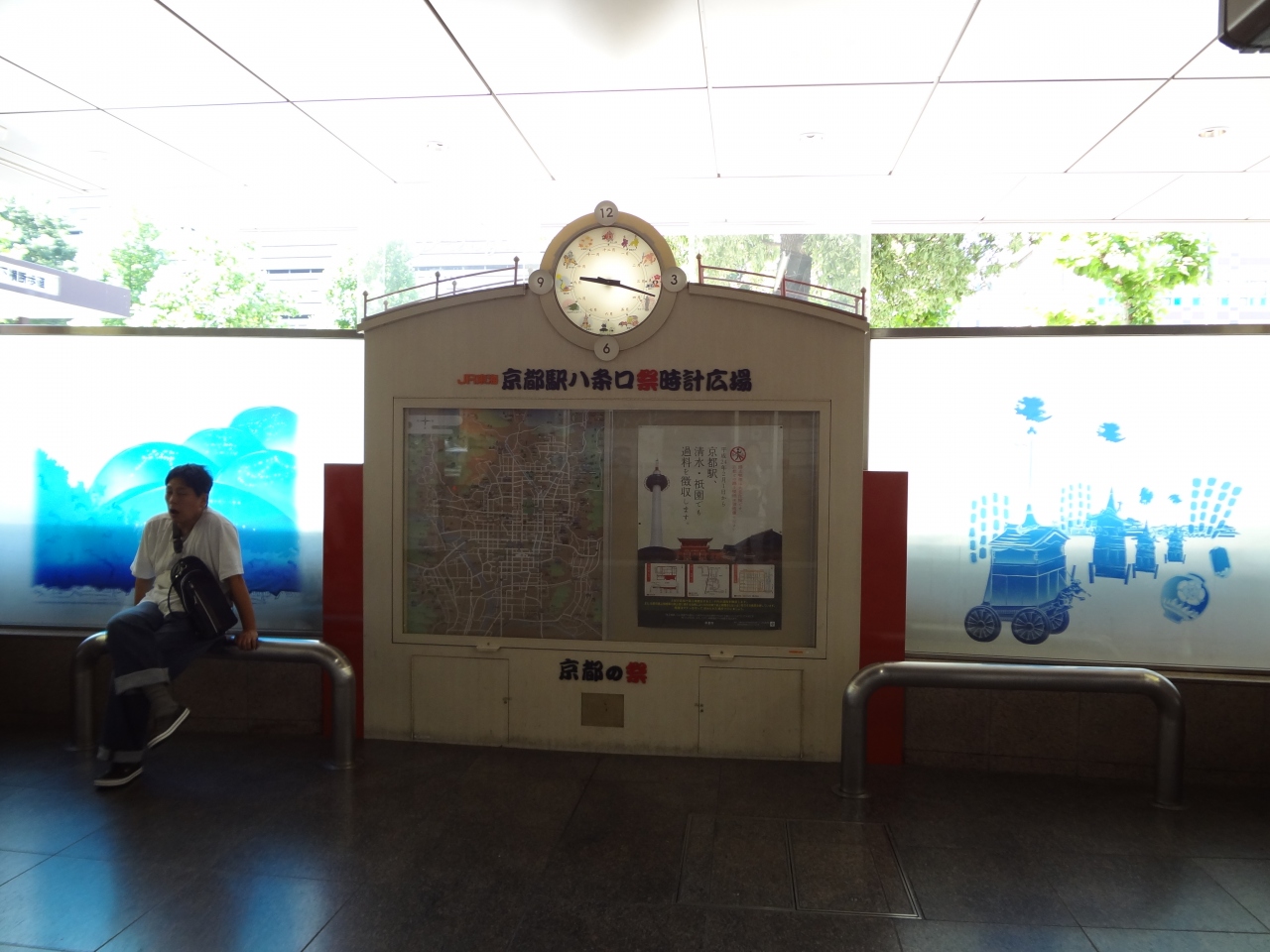 京都駅八条東口にある待ち合わせスポットです。新幹線口からも近く、タクシー乗り場やバスロータリーも目の前なので便利な場所にあります。ベンチもありますので座って待っていられるのも良いと思います。これからの季節は暑いので、広場の前にあるアスティロード内で待機する方もいらっしゃいます。