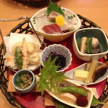 友人が普段から御用達の和食屋さんでした。店内はしっとり大人な感じです。色んなセットメニューに加えて単品メニューもありました。一番お得な「孤山弁当」は2100円で、少しずつ色んなおかずが入っていて見た目にも美しいです。お刺身、天ぷら、焚物、お汁、ご飯も貝柱の入った炊き込みご飯だし、大満足でした。最後はデザートがあり、アイスクリームかコーヒーが選べました。他のセットも美味しそうでした。