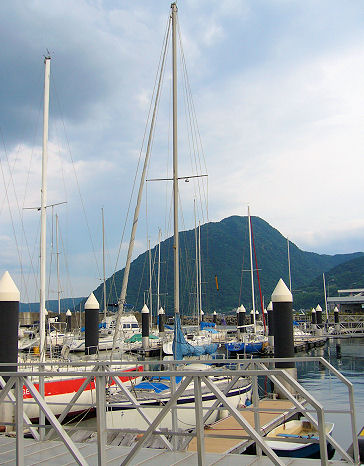 高崎山を背景にずらずらと並ぶヨットの姿を、隣接する北浜公園から眺めることが出来ます。