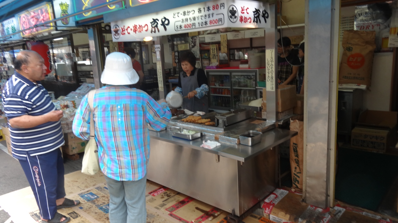 串カツ、どて煮、鰻・鯉・鯰などの川魚料理の店が軒を連ねます。