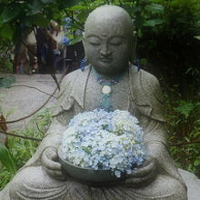 鎌倉を代表するあじさい寺は長谷寺と、ここ北鎌倉の明月院。アジサイの季節だけ普通は300円の拝観料が500円に値上げされますが、朝から人で溢れ、時間によっては入口に行列ができるほど。明月院の紫陽花の特徴は八割方が昔ながらの姫アジサイで、しかも色は明月院ブルーとも呼ばれる青ばかり。梅雨の時期の明月院の紫陽花は必見です。