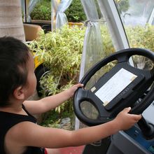 テーマパークですが、アトラクションらしきものはパイナップル園をめぐる電動カートのみ。レールもないのに、どんな原理でカートの動きをコントロールしているのか不思議。双子の片割れはハンドルを握って、自分が運転している気になっていました(笑)。