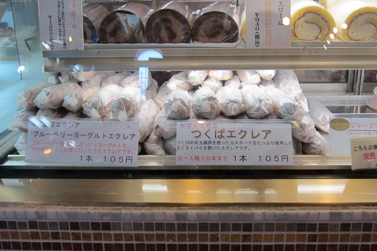 TVで行列の出来る店で紹介され(初めてではないようです)、人気が過熱気味のような気がします。エクレアは好きなので、試しに出かけてみました。平日でしたが、開店10:00頃着くとやはり行列はすごかった。店に入れたのは10:30過ぎです。店の中でも並んでいますが。多くがエクレア目当てのようです。他のケーキはほとんど売れていないのでは?