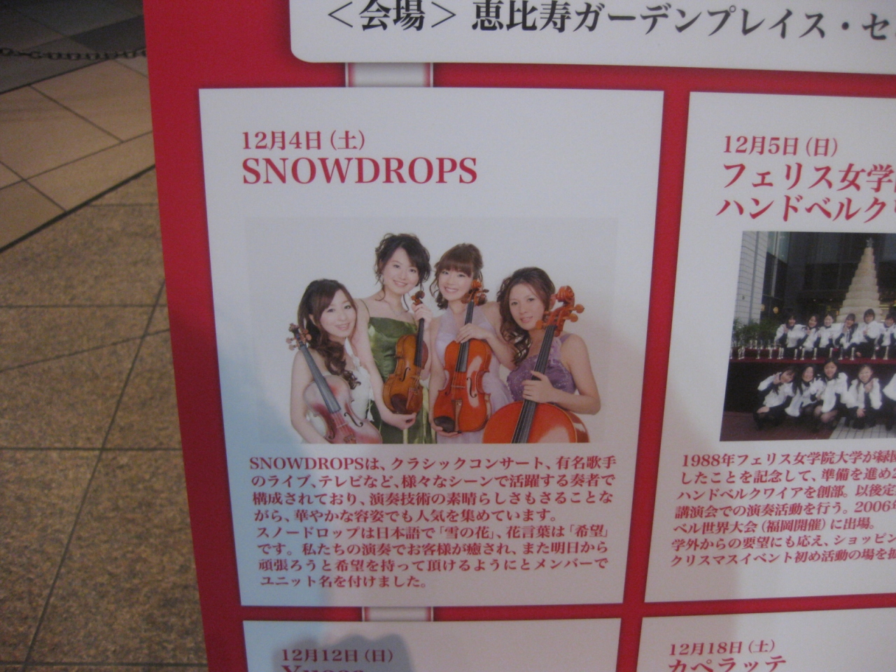 ウェスティン東京に宿泊時、夕食後の腹ごなしに恵比寿ガーデンプレイスへ。毎年恒例のイルミネーションですが、毎年きちんと感動します。年末独特のワクワク感のなか、イルミネーションの気品ある美しさ、行き交う人は身なりの良い紳士・淑女とご子息・ご令嬢、屋外でのクラシック・コンサートなど、恵比寿ガーデンプレイス全体に漂う気品の高さが大きな魅力になっています。