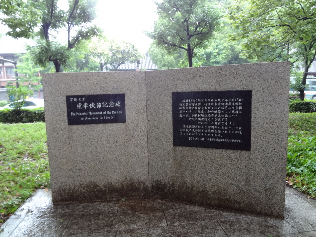 日米修好通商条約批准のために使節団が渡米してから100年が経ったのを記念して作られた石碑とのこと。