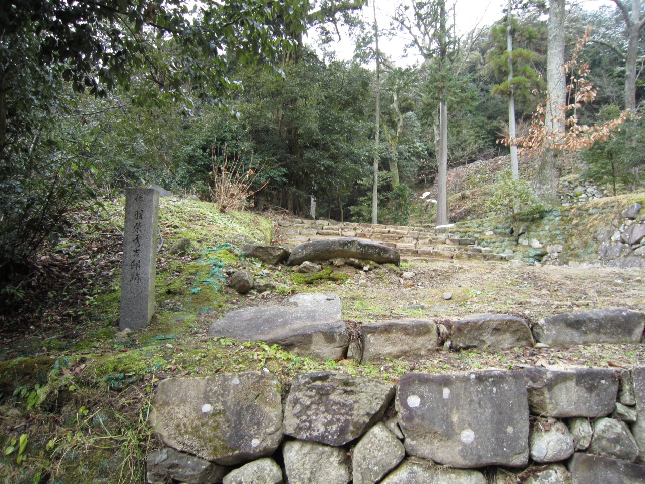秀吉邸跡や前田邸跡を見ながら階段を上り、信忠邸跡も見て、信長廟(二の丸)へ。