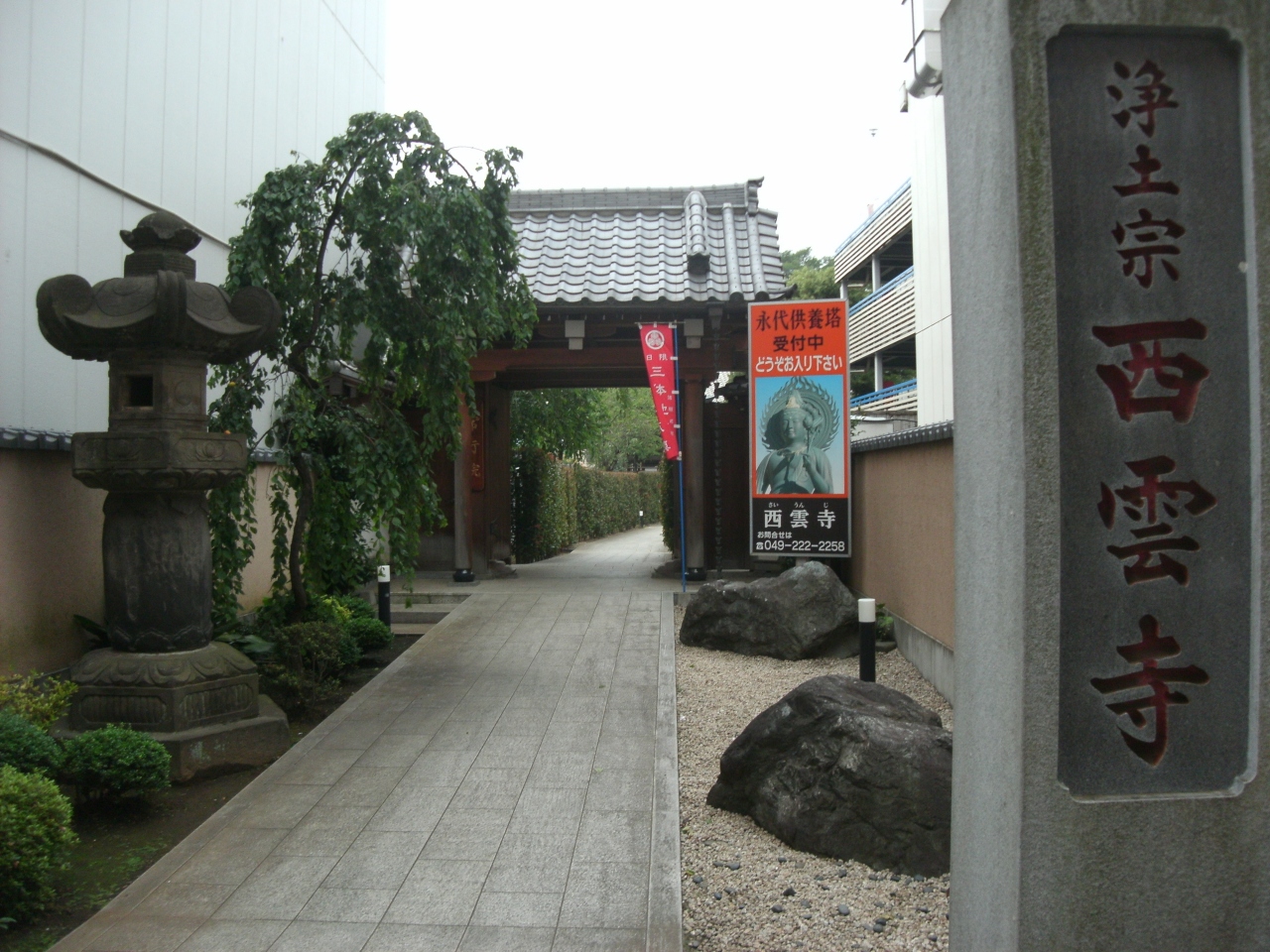 川越の繁華街クレアモール、丸広百貨店前に山門があります。