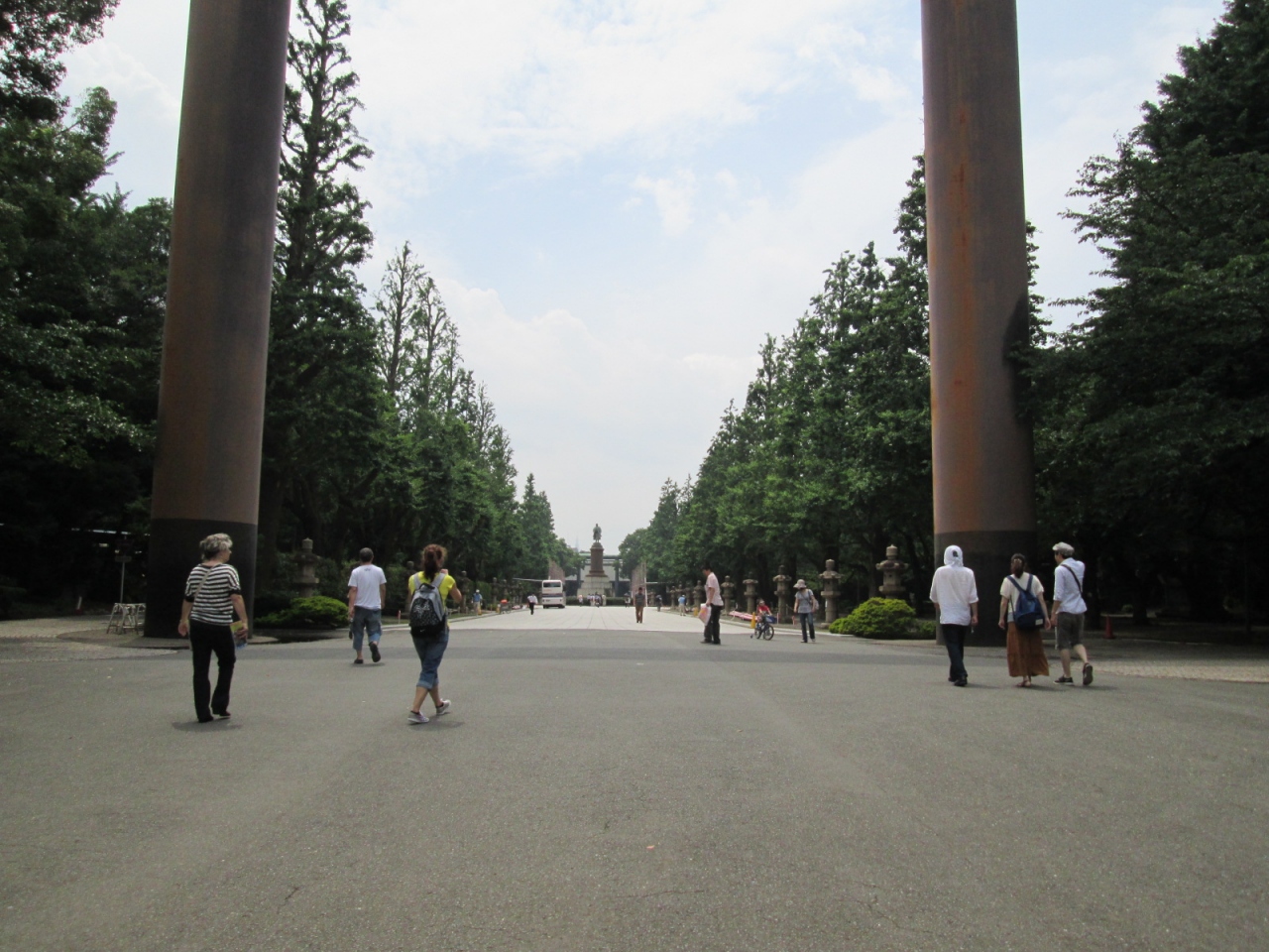国のために命を捧げられた方々へは、心から「ありがとうございました。安らかにお眠り下さい」とお祈りすることはできます。ただ靖国神社そのものには政治的な思惑を感じますし、そのために作り上げられた美談にも恣意的なものを感じます。設立の経緯から、神社組織の再編も難しいでしょうから…。神社そのものは巨大な大鳥居、幅の広い立派な参道、所々に見られる菊の御紋章と、国家神道系神社の最高峰であることが実感できます。
