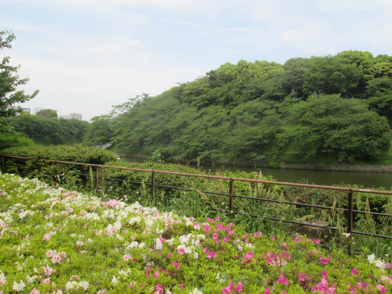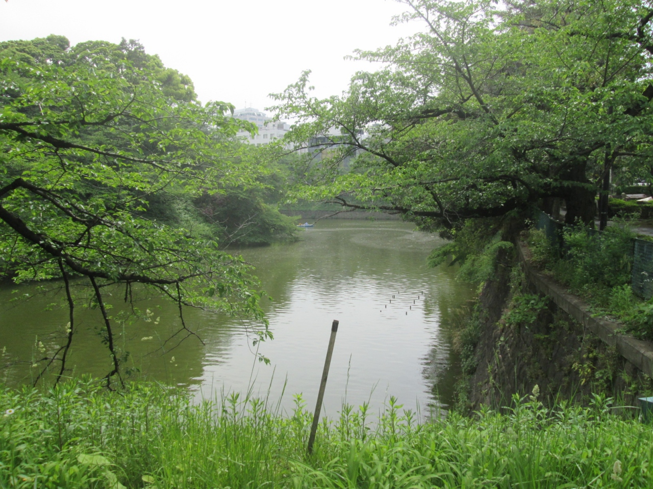 都内における”桜の名所”としてあまりにも有名な場所ですが、まさに大都会の真ん中にある緑のオアシスです。バックは江戸城の壮大な石垣、緑の木々、そしてボートの浮かぶ水面…。「千鳥ヶ淵」に沿った緑道も整備されており、”散歩にはもってこい”の場所ですね。