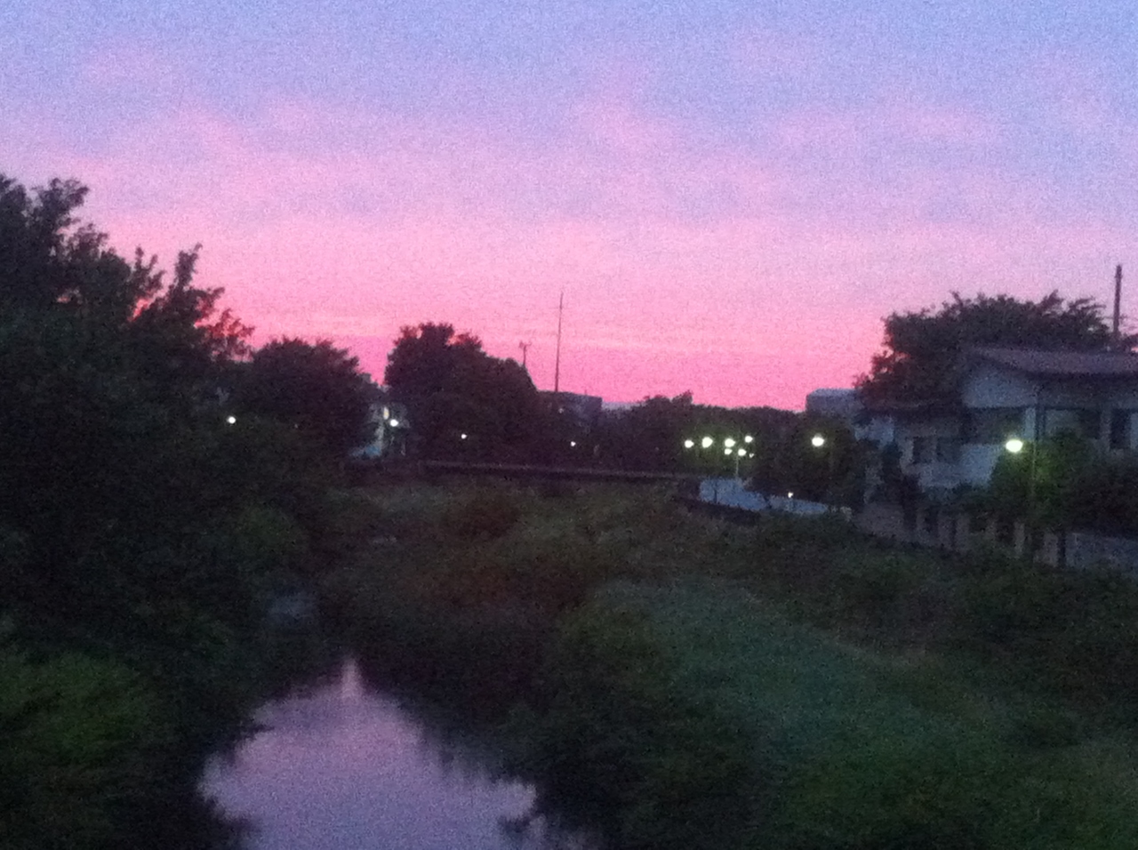 5分ほど歩いた場所にある大沢橋付近の夕暮れです。