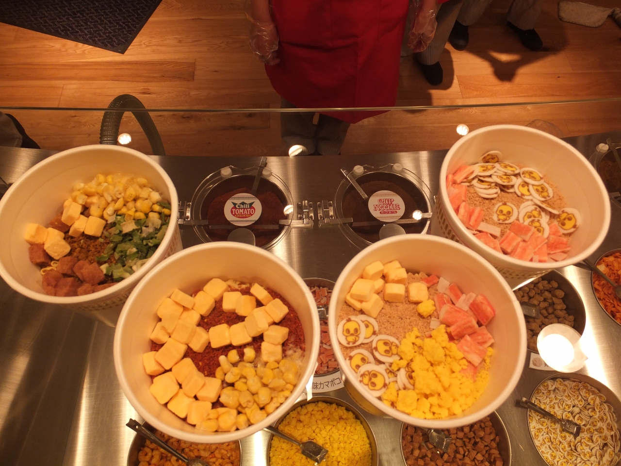 自分でオリジナルカップラーメンを作るコーナーが特に人気です。