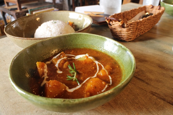 食事はカレーを頂きましたが控えめスパイスと酸味でやさしい味でした。前菜とサラダがついて1000円です。ドリンクやデザートをセット価格でつけることもできます。