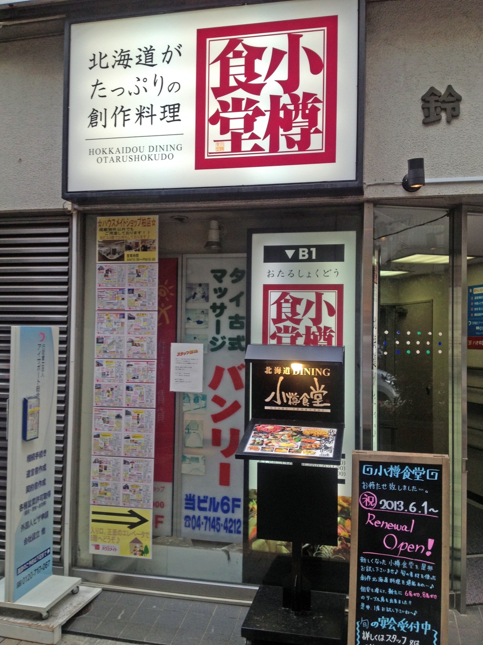 柏駅西口のデッキを降りてすぐのところにある居酒屋、小樽食堂です。