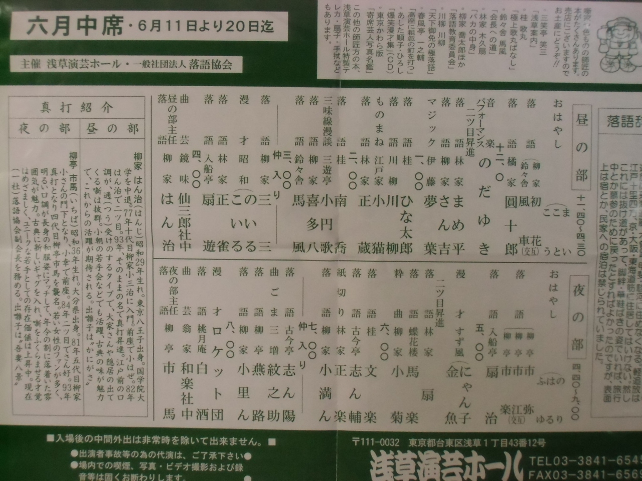 昼の部は11:40~16:30、夜の部は16:40~21:00までですが、昼夜の入れ替えがないので、9時間たっぷり楽しめます。もちろん落語が中心ですが、漫才や日本伝統の曲芸、紙切りなどもあり、何度見ても楽しめます。そして安いのが嬉しいです。