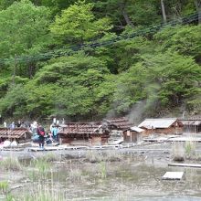 源泉地近くにある‘あんよの湯’は無料で日光湯元温泉の硫黄泉が楽しめる足湯施設、肌でその泉質を確認できます。