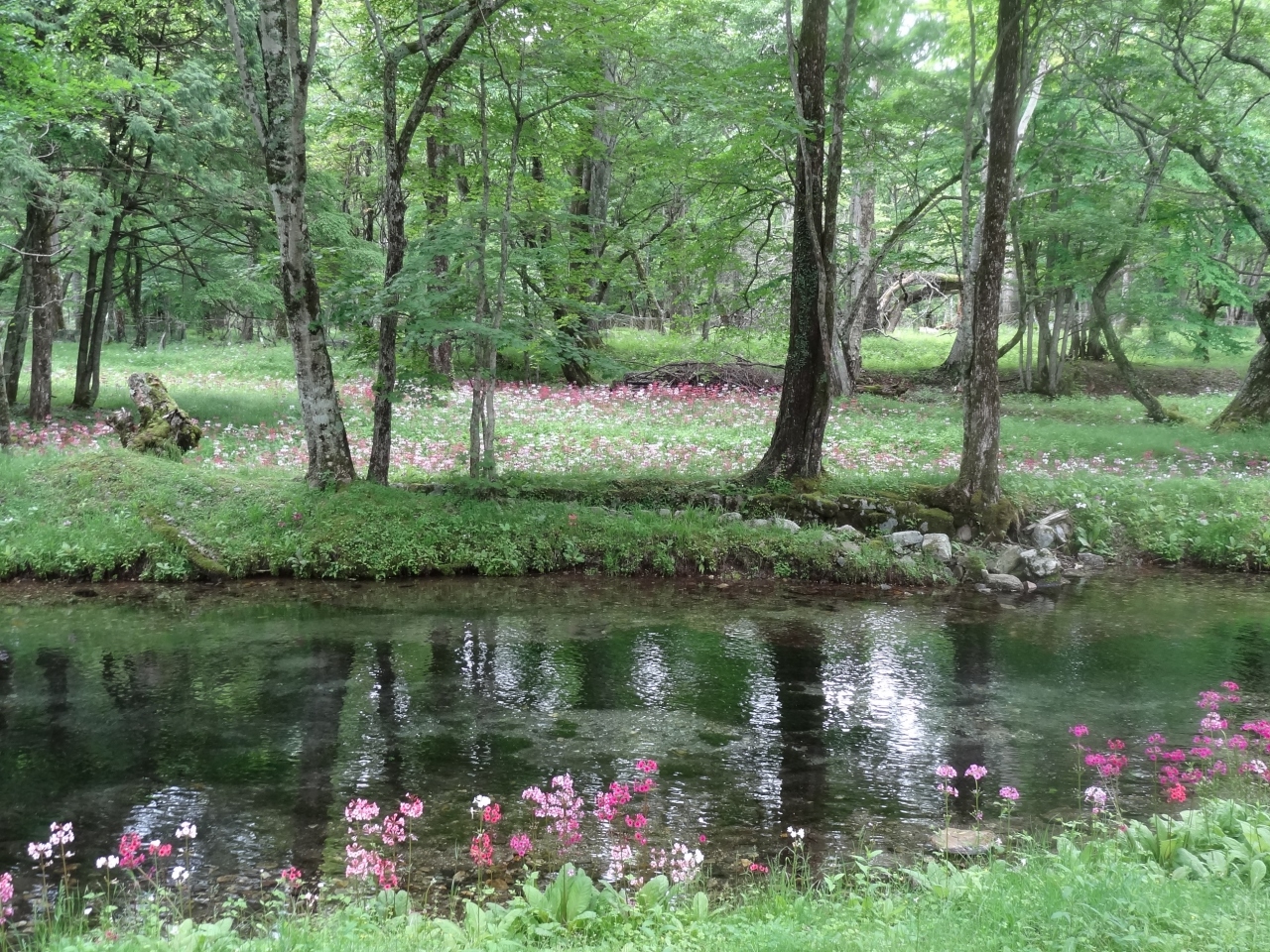 クリンソウの茎部分を鹿が食べてしまうため、防鹿ネットが群生地まわりにグルリと張り巡らされています。クリンソウ保存のために尽力されている方々の努力と苦労があって見られる美しい風景、マナーを守り見学しましょう。募金にも是非ご協力を。