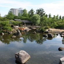 自転車の要領で漕ぐと、半径2メートルくらいの円を描いて回る遊具があります。公園内には川が流れていて、子供達は石から石へとジャンプしながら川を渡ることを楽しんでいました。カリヨンもあって、時間ごとに曲を演奏しています。