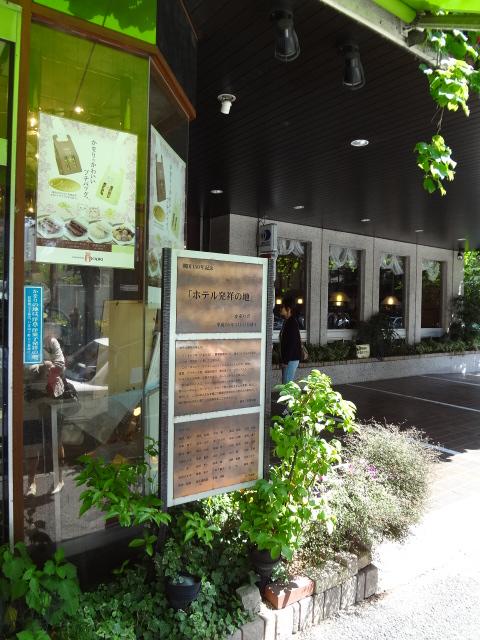 大通りから少し入った「横浜情報文化センター」の向かい側に, 「かをり」という レストランがあります。その入口の横に記念碑が建てられています。1860年、 開港直後に横浜のホテルの元祖がこの地で生誕したそうです。