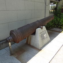 横浜開港資料館の前にある開港広場の中に展示されています。外国人居留地90番にあったスイスの商社シーベル・ブレンワルト商会は生糸の輸出と時計の輸入をしていたそうですが、明治維新の際、武器の輸入も手がけていたそうで、昭和34年、同社跡地で建物の基礎工事中に大砲が見つかり、2003年に横浜市に寄贈されたものだそうです。