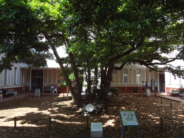この、たまくすの木は、江戸時代、横浜がちいさな農漁村であったころからこの場所にあり、1854年のペリー来航時に艦隊に随行してきた画家ハイネが描いた絵に描かれた木がこれにあたると考えられているそうです。大火や関東大震災の被害を受けながらも生き続けているそうです。