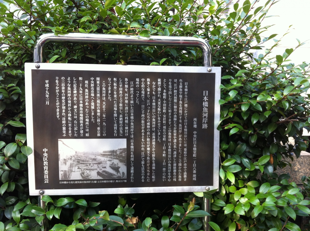 日本橋のたもとにある碑で、江戸幕府に上納する残りの鮮魚を