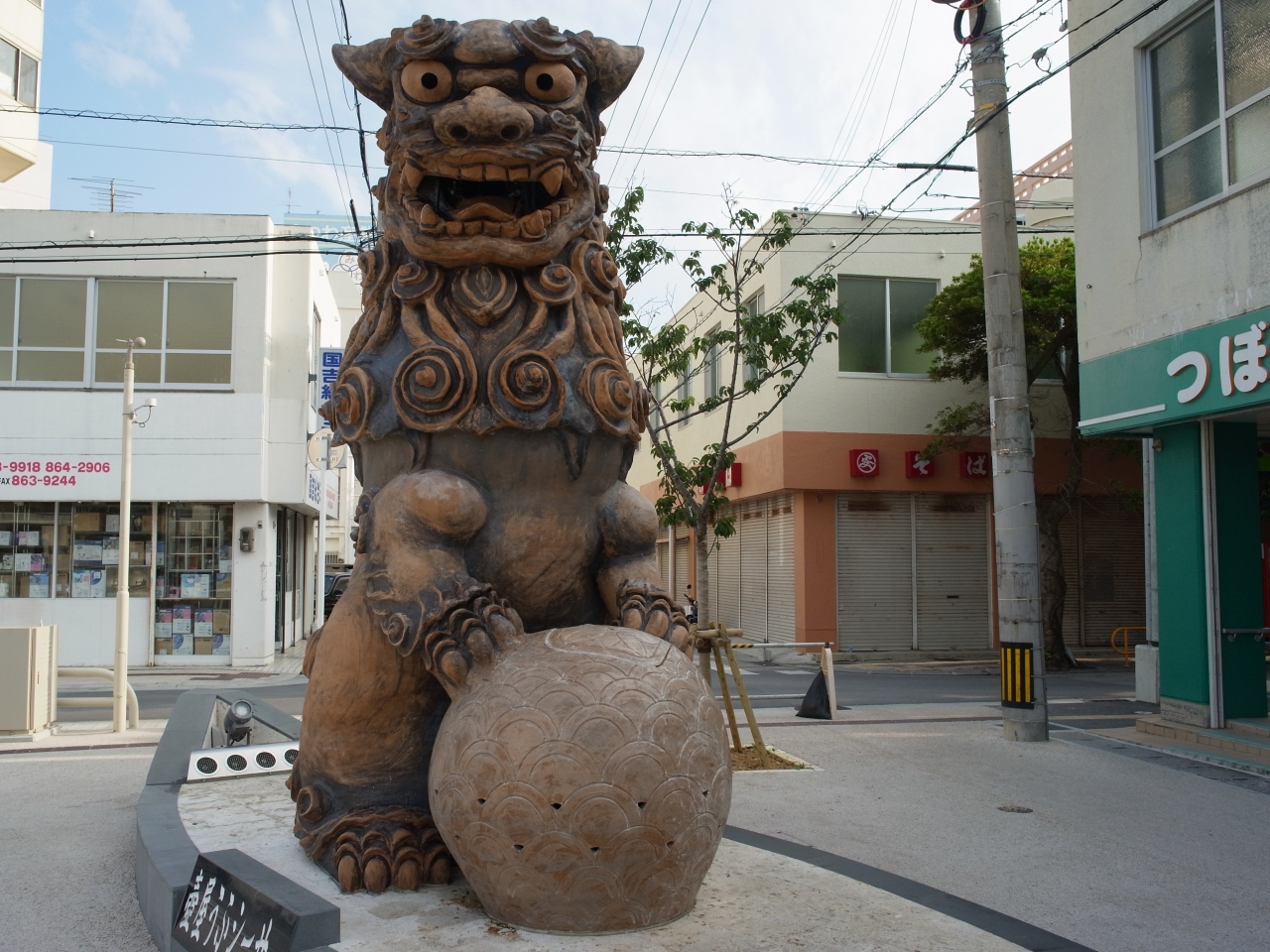 沖縄の古い町並みが残る壺屋地区の一角に「壺屋うふシーサー」が登場しました。高さ4m弱のシーサー時間帯によって水煙を吐いたり、ライトアップされたり・・・那覇市立壺屋焼き物博物館から目と鼻の先の場所にある新たな写真スポットです。