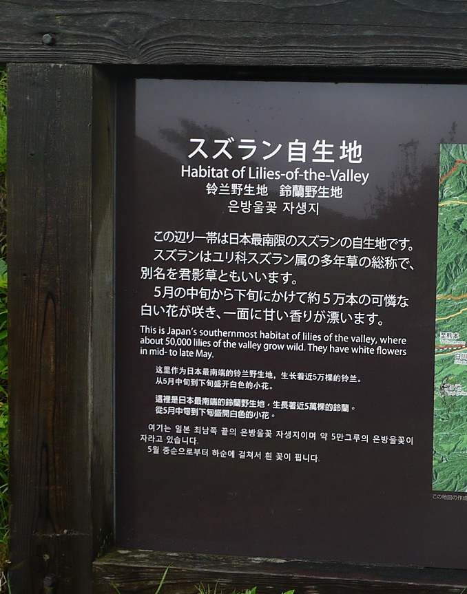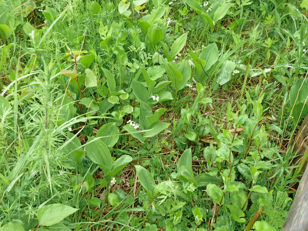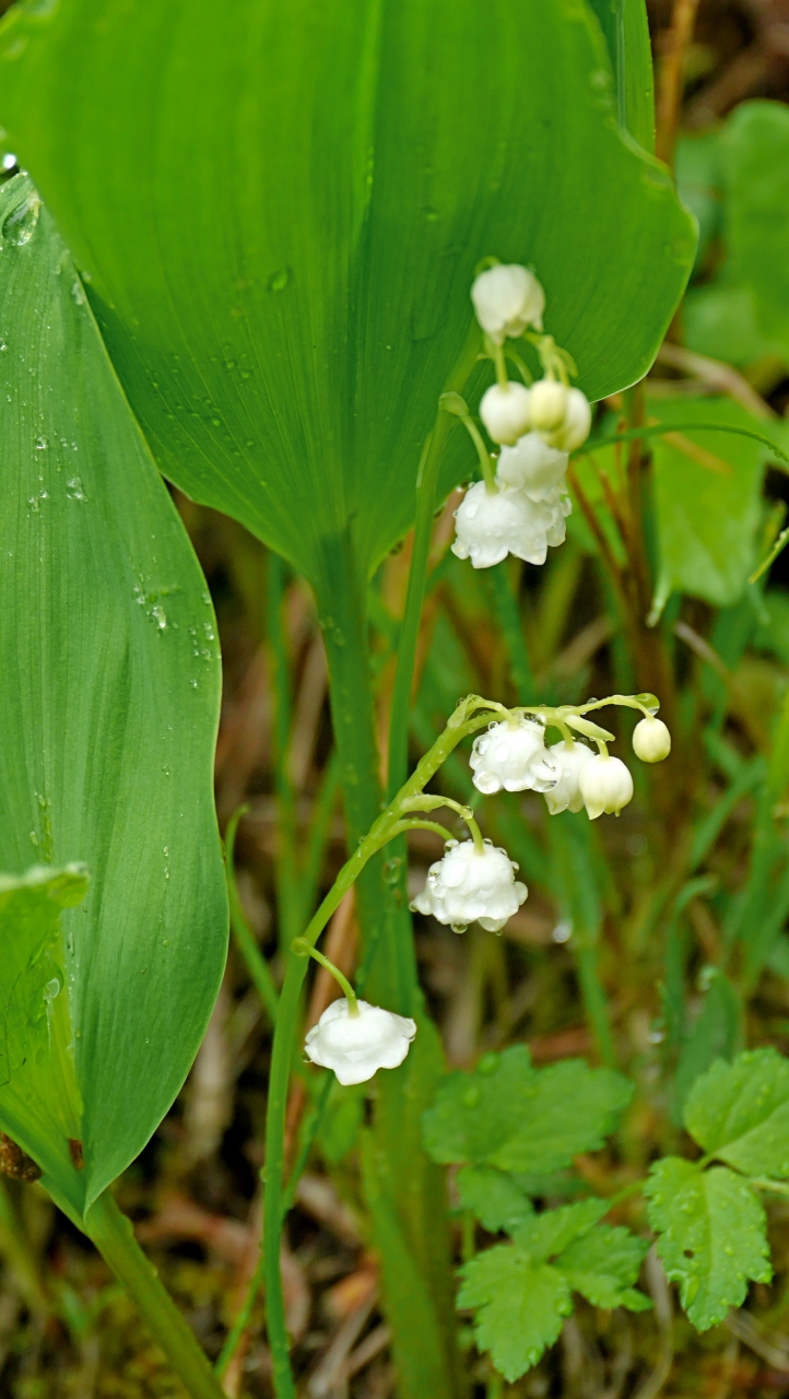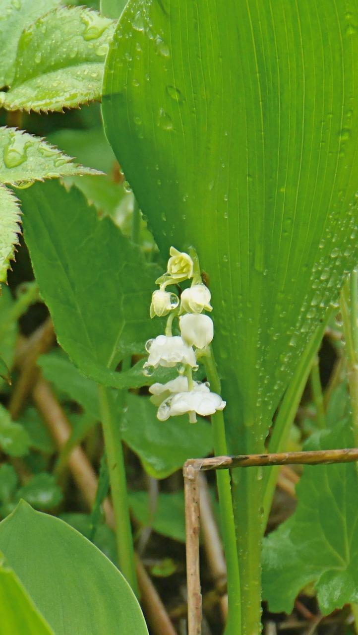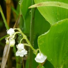宮地の菓舗さとうでたまたま別のお客さんが言っていた「すずらんの里」という言葉が心に残る.ナビに「すずらん自生地」と載っていたので行ってみた.最初は雑草が多く失望したが,観光客の来ない南側の斜面にはすずらんがたくさん咲いていて,甘い香りもする.自生なので小ぶりのスズランだがあめのしずくにみずみずしい.今日は雨でよかった!少し外れたところまで丁寧に観察するとよい.日本の南限の自生地とのこと