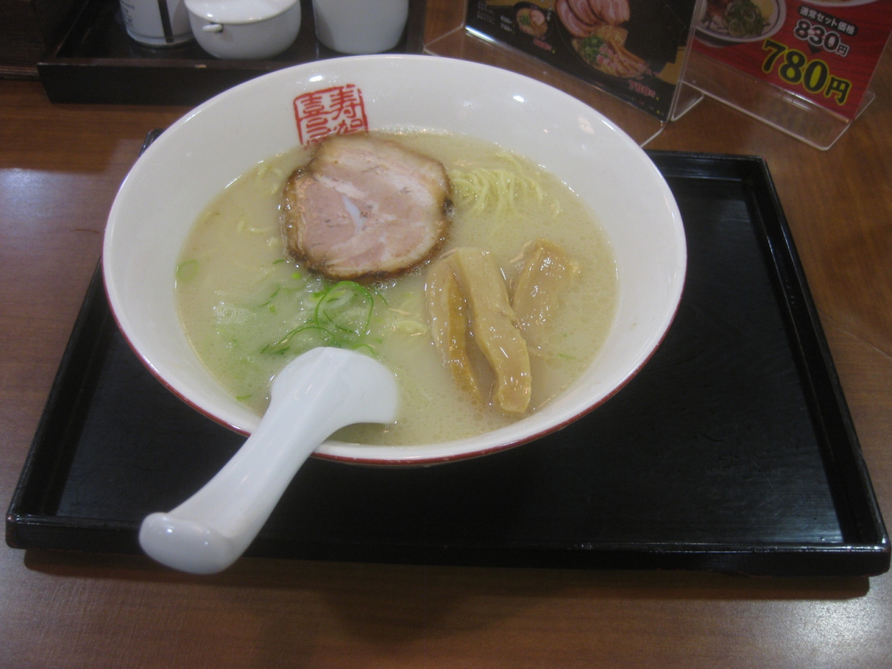 名古屋人にとってラーメンの定番といえばスガキヤ。かつては”店内は女性限定で、男性はカウンターのみ”なんて店も多かったと思います。ラーメンをソフトクリームなんかと一緒に注文するなんて荒業も名古屋…いやスガキヤにおいては一般的でした。何と言っても値段が安かったものですから。久しぶりの名古屋、「久々にスガキヤ行ってみっか」と軽い気持ちでエスカ内のスガキヤへ…えっ?。店舗が新しくなっているだけでなく、メニューの値段もまったく想定外。何とこの店舗は通常のスガキヤではなく、新コンセプトの寿がきやということで、最も安いラーメンで530円。東京の感覚だと”安い”部類でしょうが、”スガキヤは安い”という先入観が拭えない名古屋人および旧名古屋人、更には元名古屋人からすると”高すぎるなも”と驚く価格です。ちなみに、現在(2013年6月)のスガキヤの通常店舗におけるラーメンの料金は290円です。新寿がきやのコンセプトは”熱い商品はより熱く ・食材の風味を損なわない様作りたてにこだわり・シズル感やジューシーさを前面に押し出した”ということらしいですが、それだけで、この料金の差になるか?そもそも”スズル感”って何?味は…スガキヤと同じだし…。ただ、一番残念だったのは、あのフォークスプーンではなく、普通のレンゲが出されたことです。フォークスプーンで麺をすくおうとして取り落とし、シャツにスープの飛沫が飛んで数か所にシミができ、「やられたな」と苦笑しながら食べるのが、スガキヤラーメンの食べ方の王道のはず。頑張れスガキヤ!