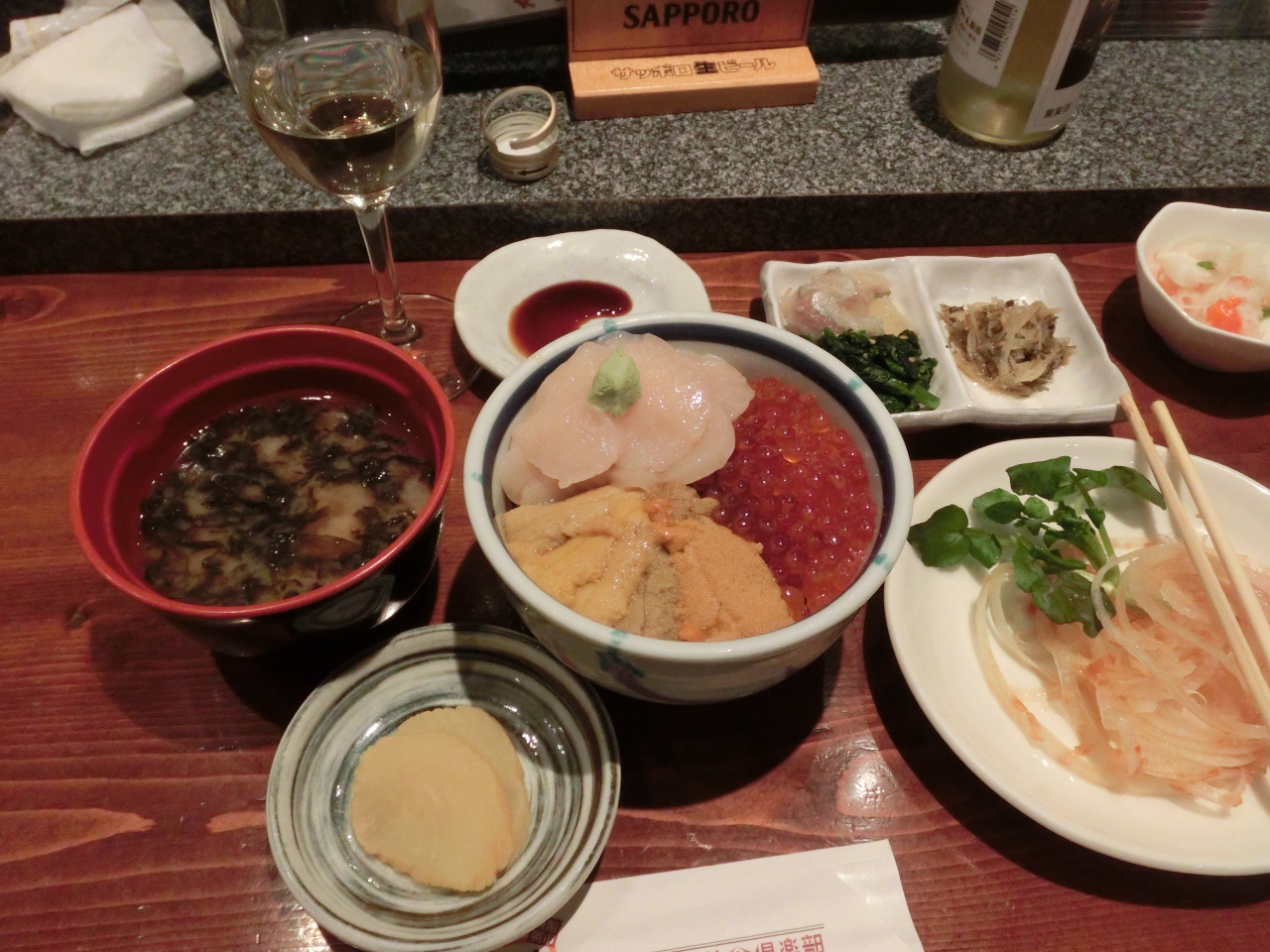 ほたてといくらとウニが乗っている巴丼のミニサイズと、