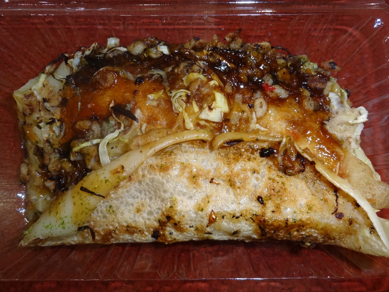 近鉄布施駅にあります。「キャベツ焼き」はキャベツがメインのお好み焼きのようなもので、130円ととても安いです。安いですがボリュームがあり、味もふわふわ生地にソースがマッチしていて美味です。アツアツの状態で食べたほうが美味しいのですぐに食べることをお勧めします。