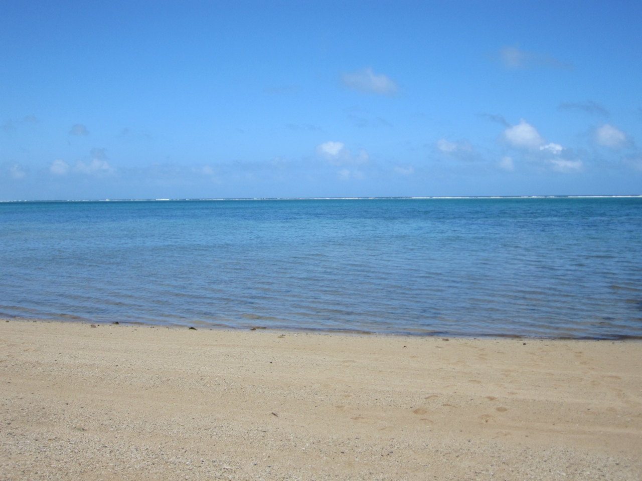 ビーチに着いた時には誰もいなくて静かで海も白い砂もきれいでした。子供たちと水遊びしたり、貝殻を拾ったり、落ちているサンゴをひろったり、のんびり、楽しく過ごせました。帰るころ地元の人らしき人が3人ほど来ただけでした。