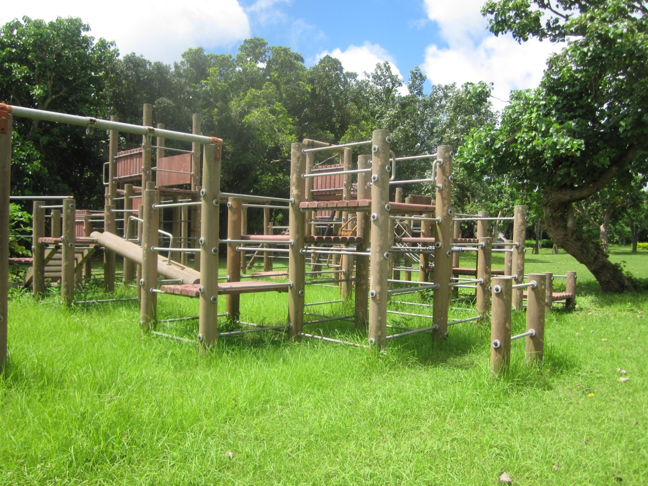 海がすぐ前なので、海で遊びながらバーベキューなどが出来るように、炊事場らしきもの(古い)ありました。テントが2個ほどあり、住んでる??と思うような佇まいでした。キャンプ場の中を進んでいくと公園がありました。この時は草が多めだったので、少しだけ公園で遊んだだけでした。